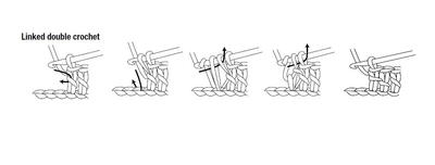 - Each Remaining ldc: Insert hook in horizontal bar on last ldc, yo and pull through loop, (2 loops on hook), insert hook in next st in row below, yo and pull through st (3 loops on hook), yo and pull through 2 loops (2 loops on hook), yo and pull through last 2 loops on hook.